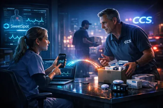 CCS, with over 30 years supplying diabetes devices, has built a platform for coaching patients on usage and ensuring ongoing adherence through home-delivered supplies. SweetSpot complements this by aggregating data from any compatible device, with clinicians spotting issues like halted uploads or expired sensors. When SweetSpot detects a supply lapse—for instance, a patient forgetting to reorder monitor sensors—its team alerts CCS to intervene directly, creating a seamless handoff that neither company achieves alone.